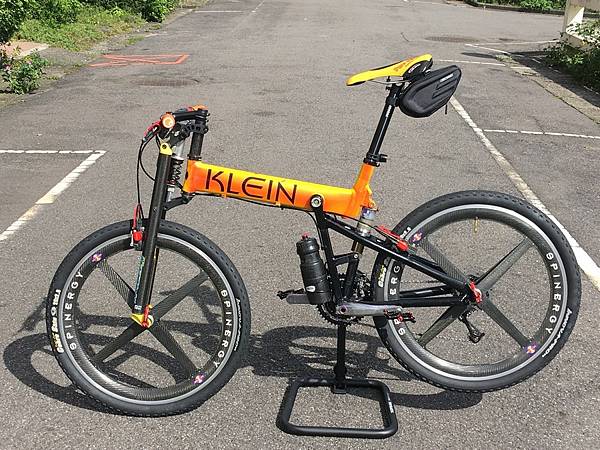 這隻有著KLEIN招牌漸層配色(KLEIN稱做KOI)的Mantra是屬於較早期的細版車架,Race則表示當時是最第二級的成車等級(無副標->Comp->Race->Pro),除了這支從美國飛來的Mantra外,差不多時間到港的還有日拍購得的Spinergy碳纖維四刀輪及Noleen電子式四連桿前插。